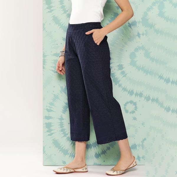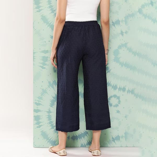 Navy blue woven palazzos